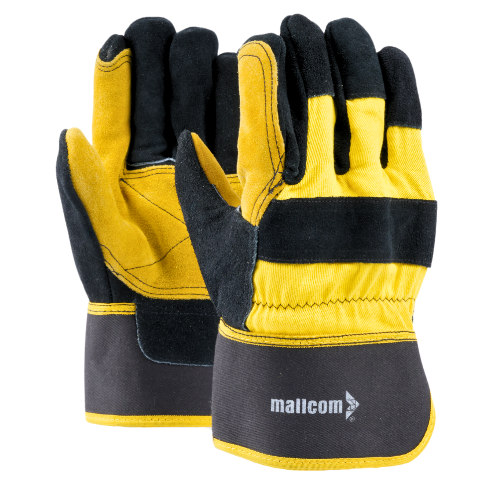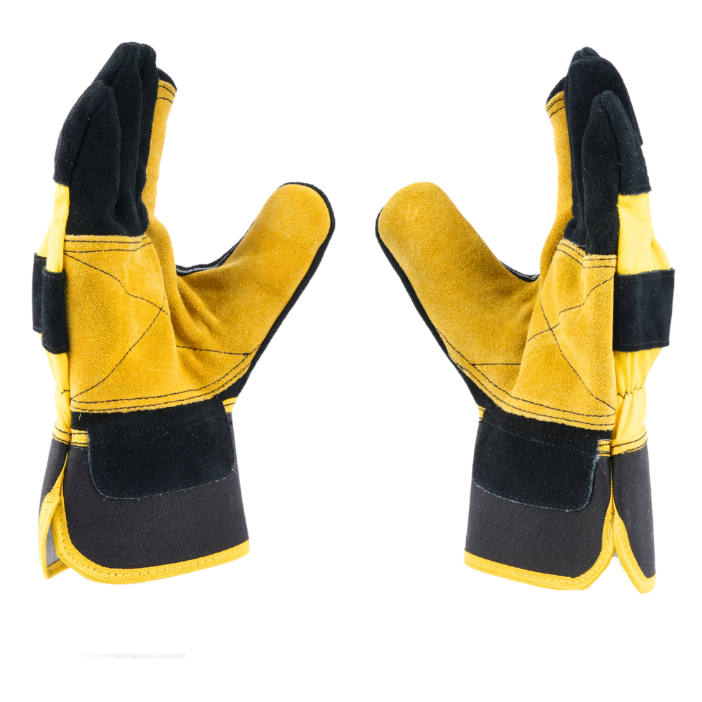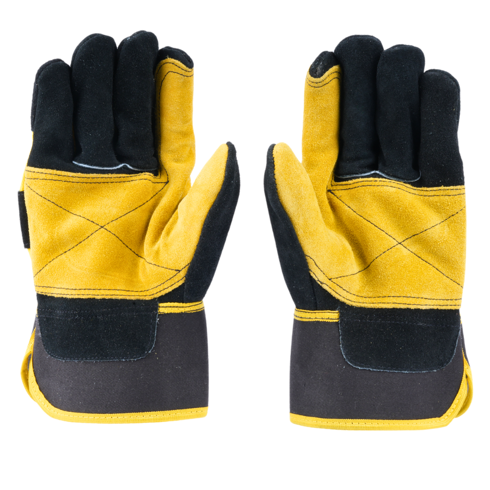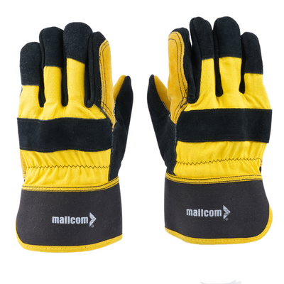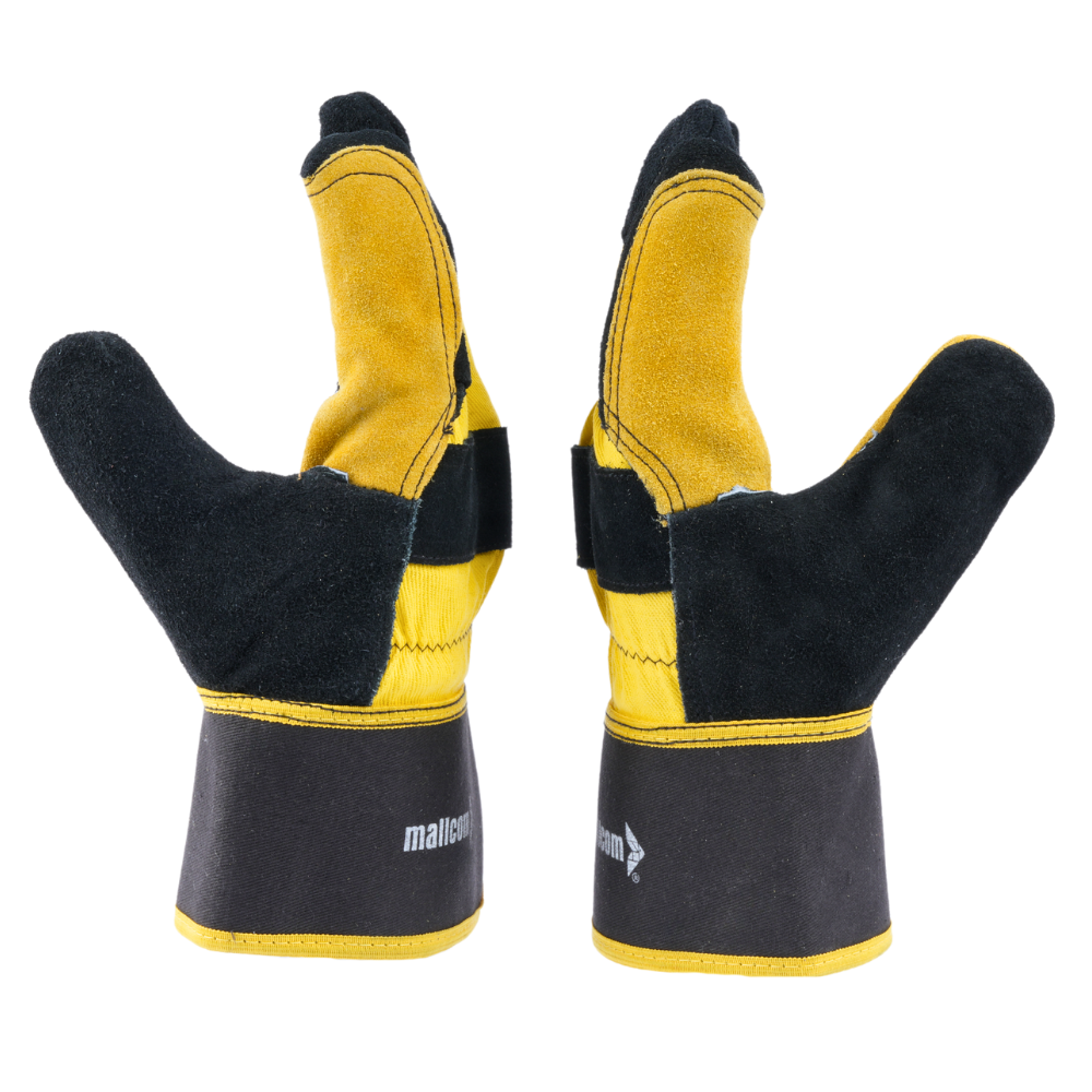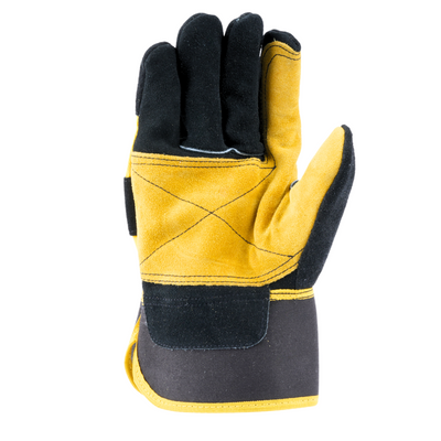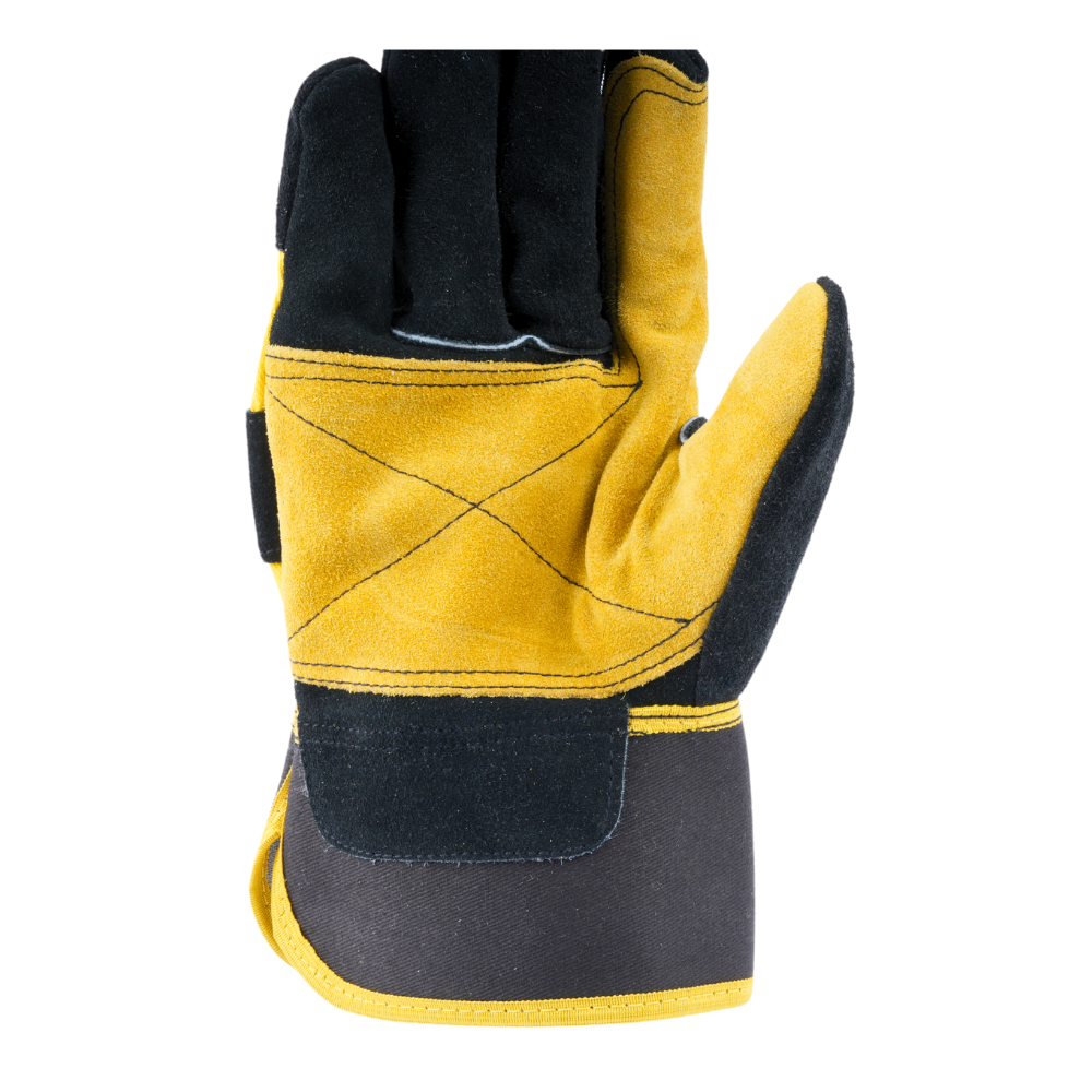 Palm: The palm is reinforced with yellow-colored split leather over black split leather, providing durability and resistance to abrasion. This combination enhances protection in high-wear areas such as the palm, thumb, and index finger.