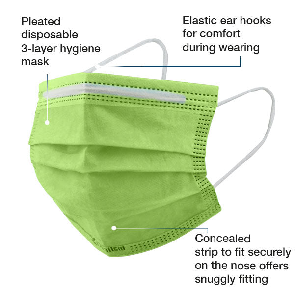 - Non-Sterile, Pleated disposable 3-layer surgical mask.