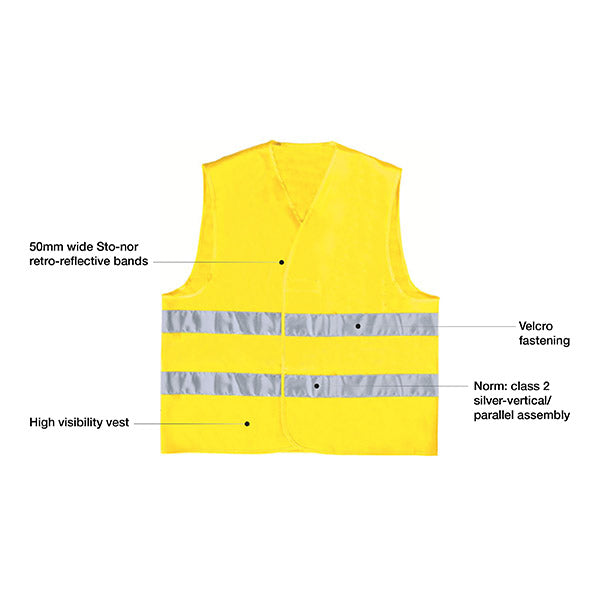 Hi-visibility vest made with very lightweight polyester fabric which is suitable to all weather.