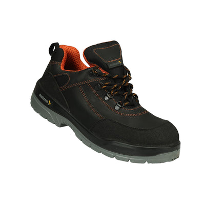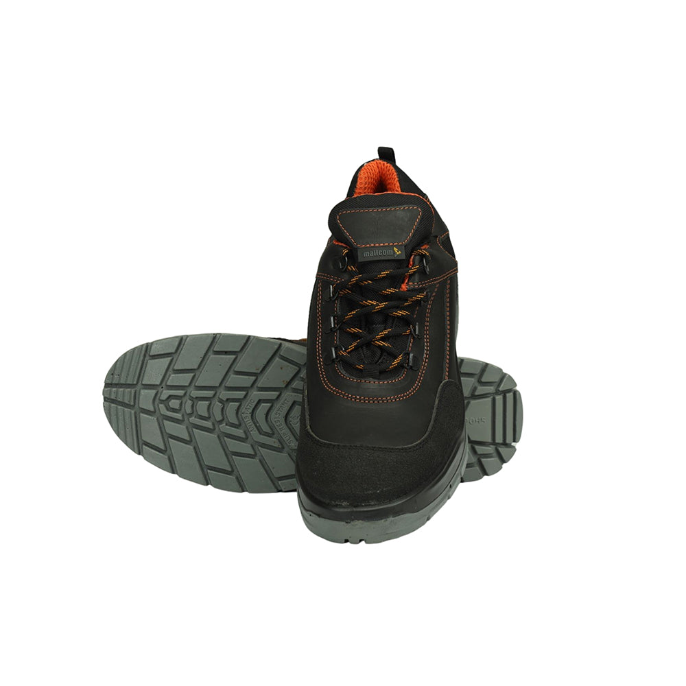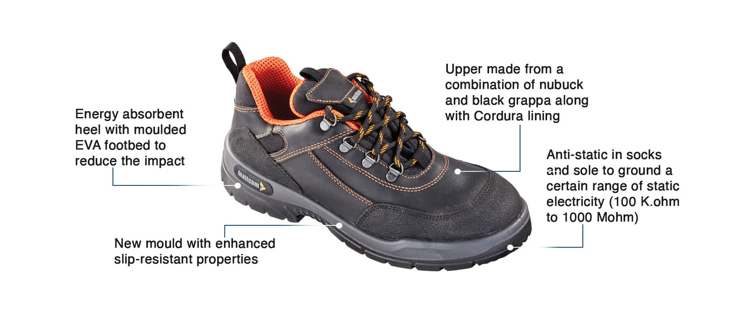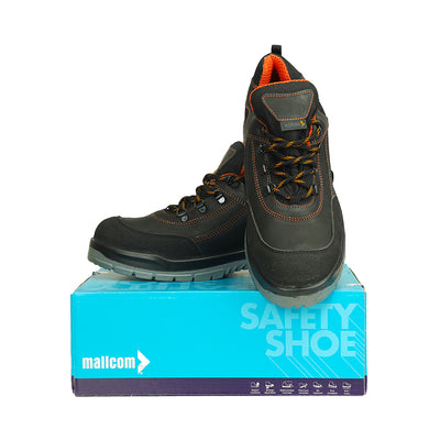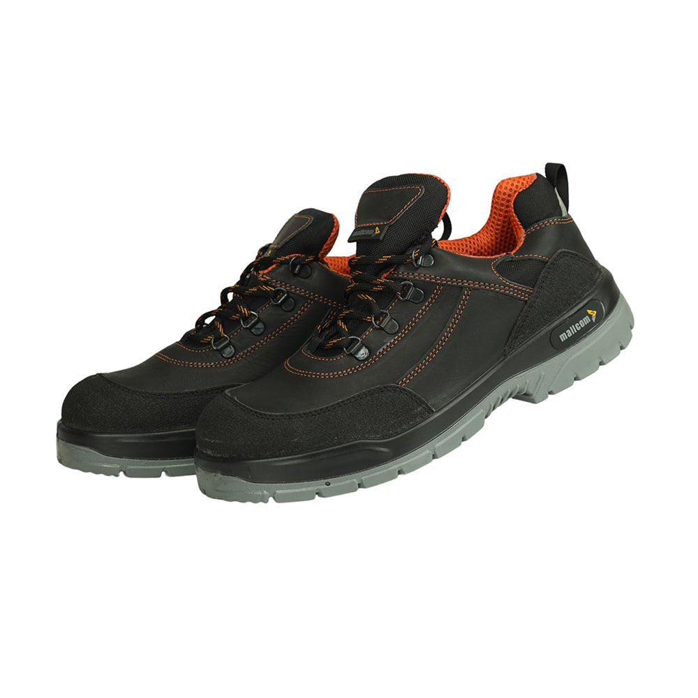 - Mallcom Cornish Rex buff oily nubuck black leather low ankle safety shoe with double density injected sole