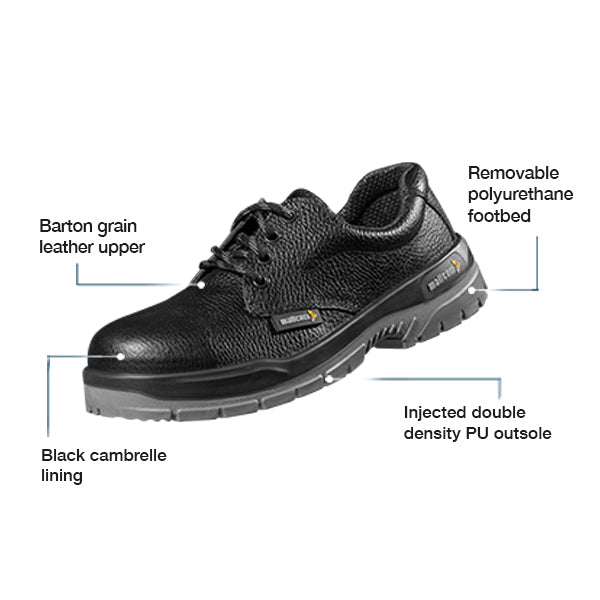 - Low ankle leather boot made for all major floor work in industrial construction or workfloors to protect from hazards like falling objects or heavy loads or working with sensitive equipments.