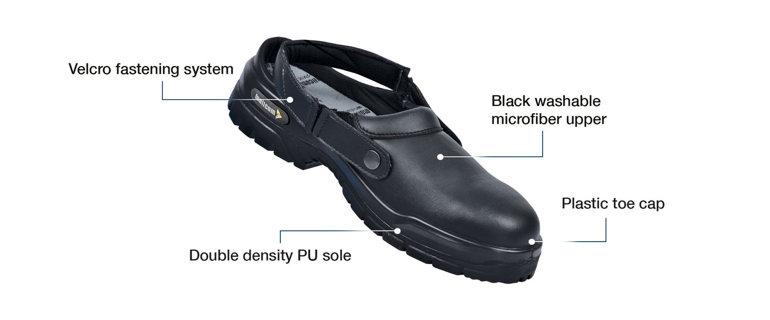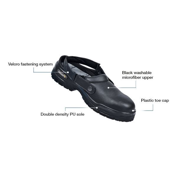 - Basic occupational footwear with microfibre upper sandals with a clog design