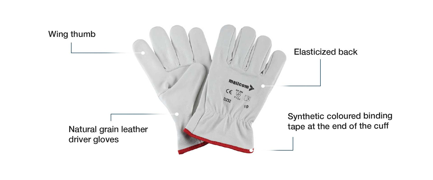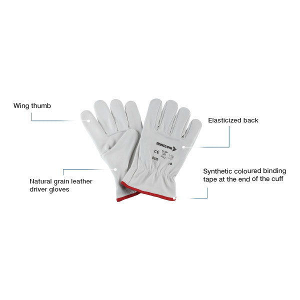 PREMIUM QUALITY AND COMFORT - Crafted from goat grain leather, these driver gloves offer exceptional durability and comfort. The winged thumb and elasticized back provide a snug fit and ease of movement, enhancing overall wearability. With synthetic colored binding tape at the cuff, they boast both style and functionality, making them suitable for various tasks requiring dexterity and protection