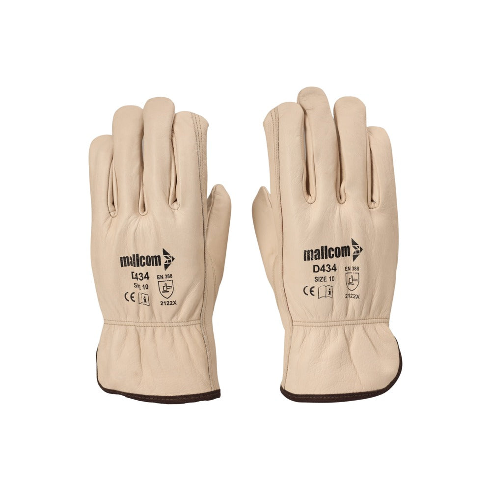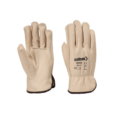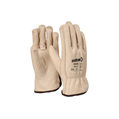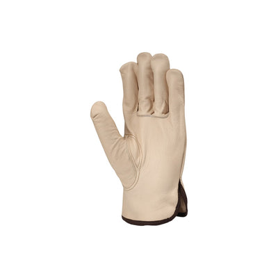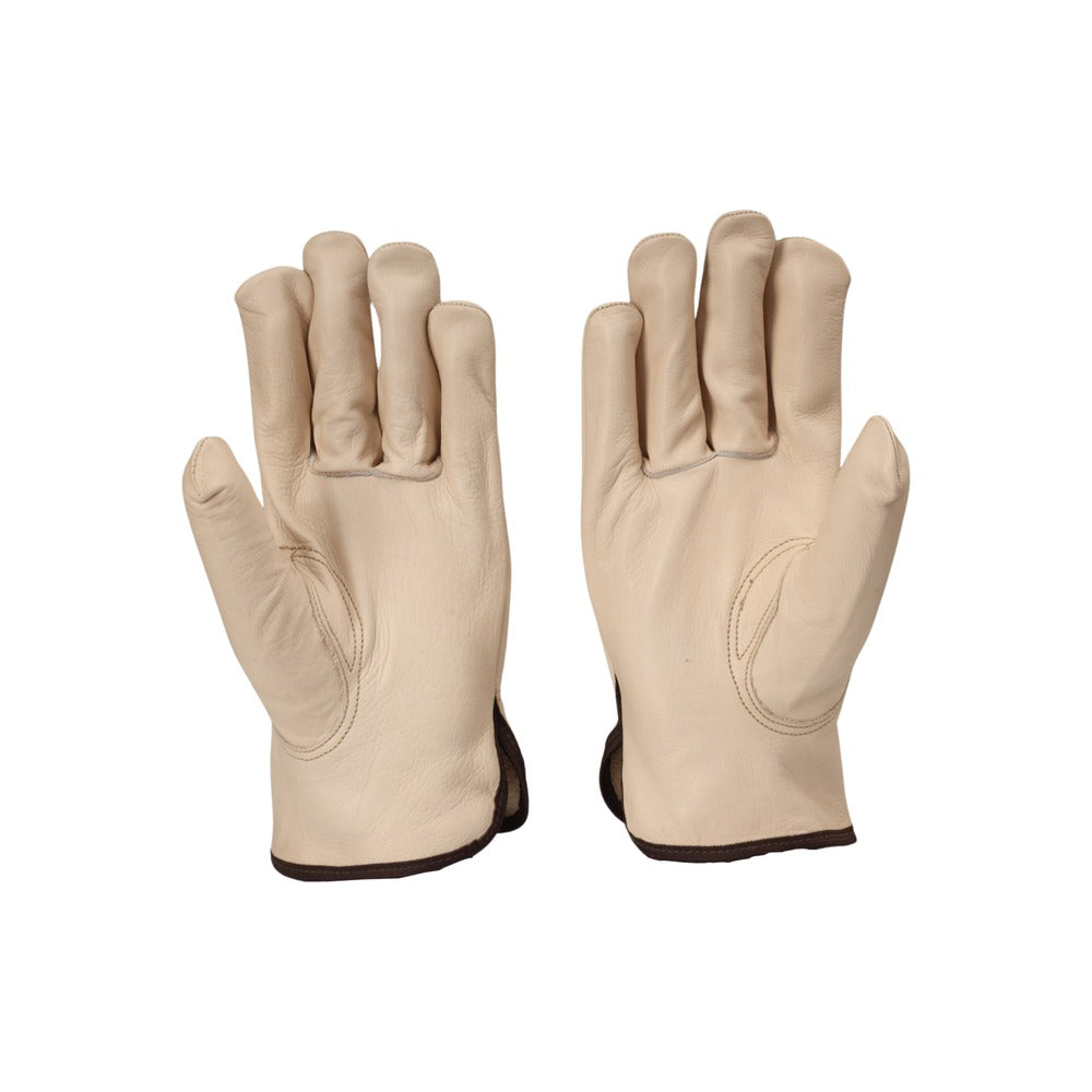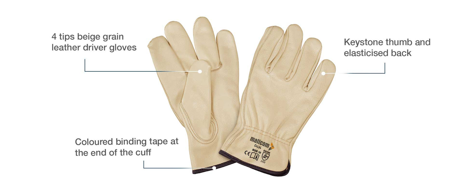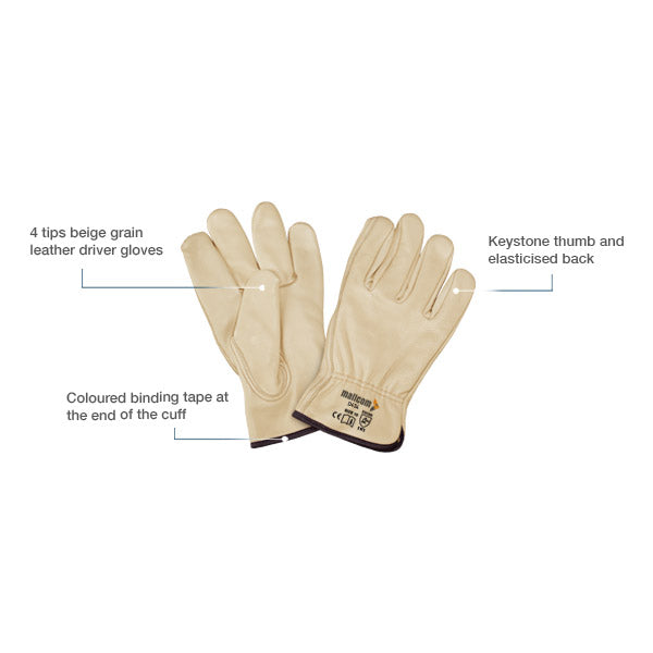 All beige 4 tips grain leather driver glove, keystone thumb pattern