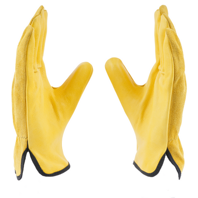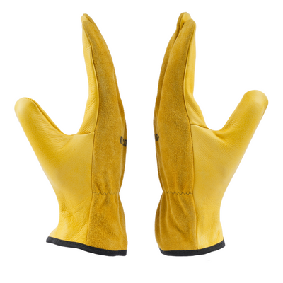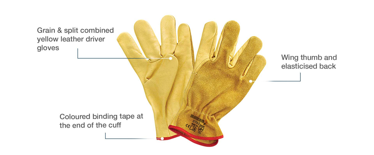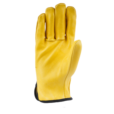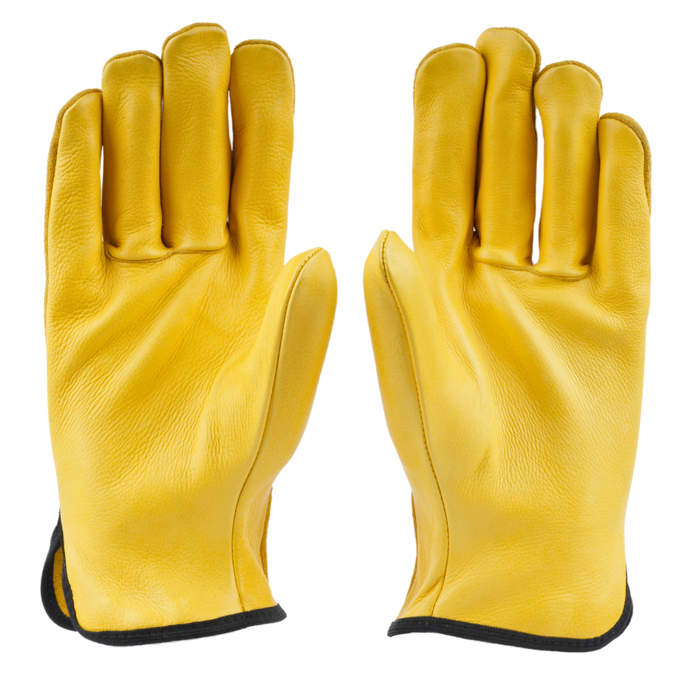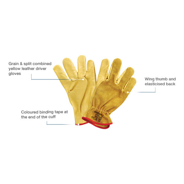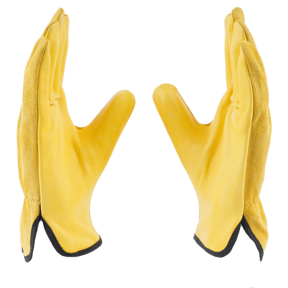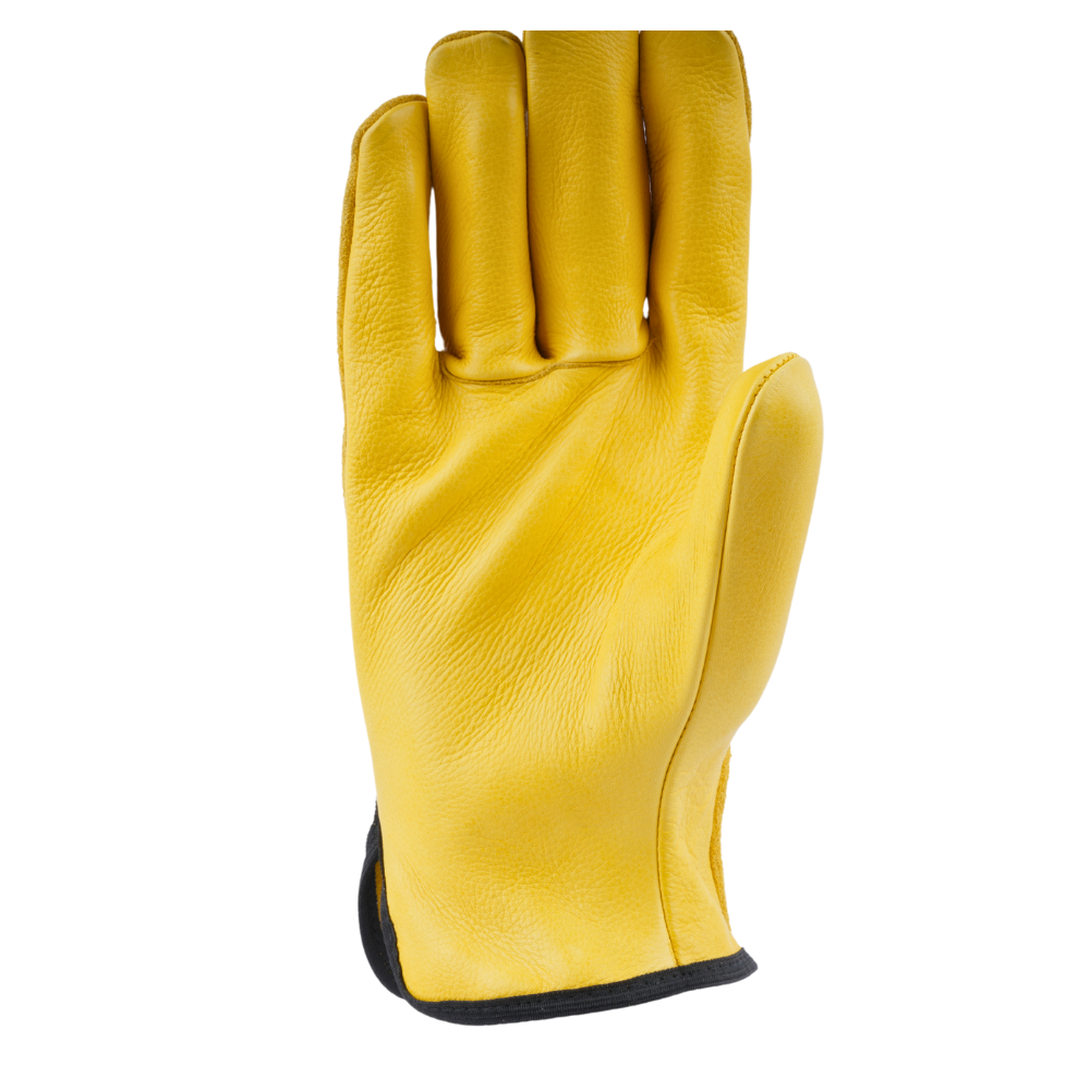 Palm: Made of yellow-grain leather, which offers durability, flexibility, and a good grip, essential for driving and handling tasks.