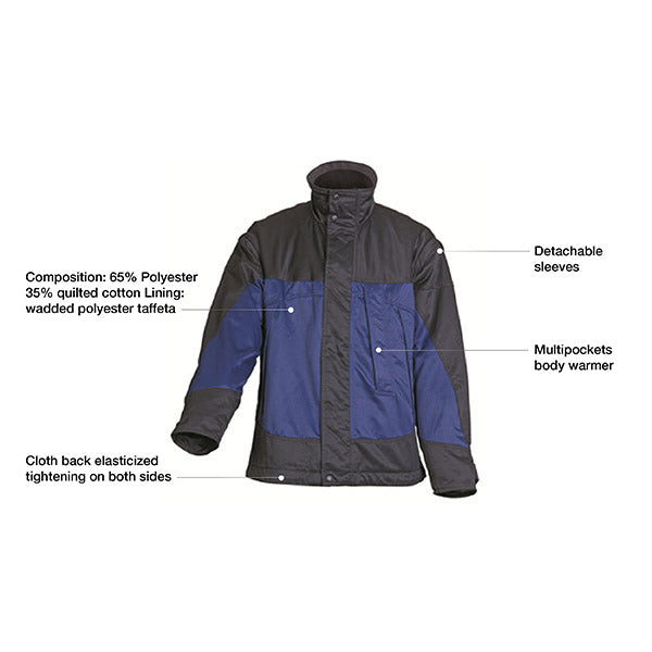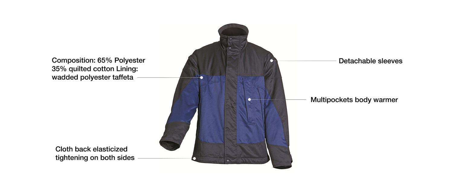- Lining: wadded polyester taffeta multi pockets body warmer cloth back elasticized tightening on both sides.