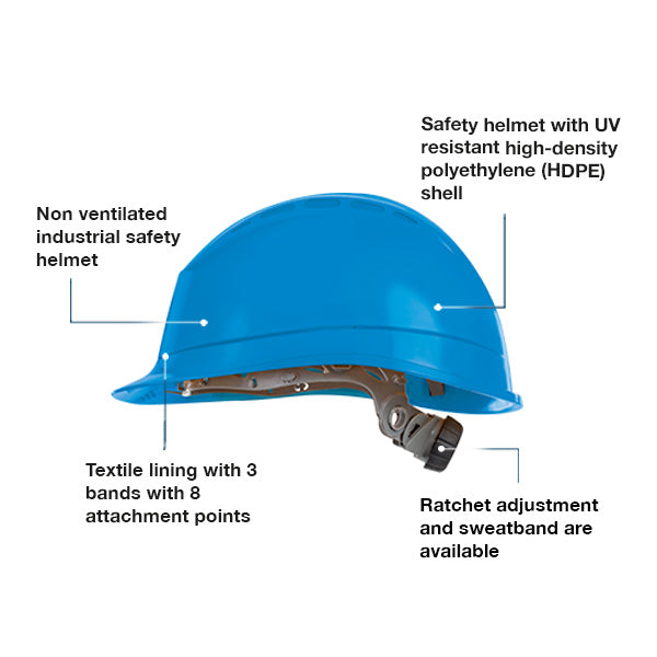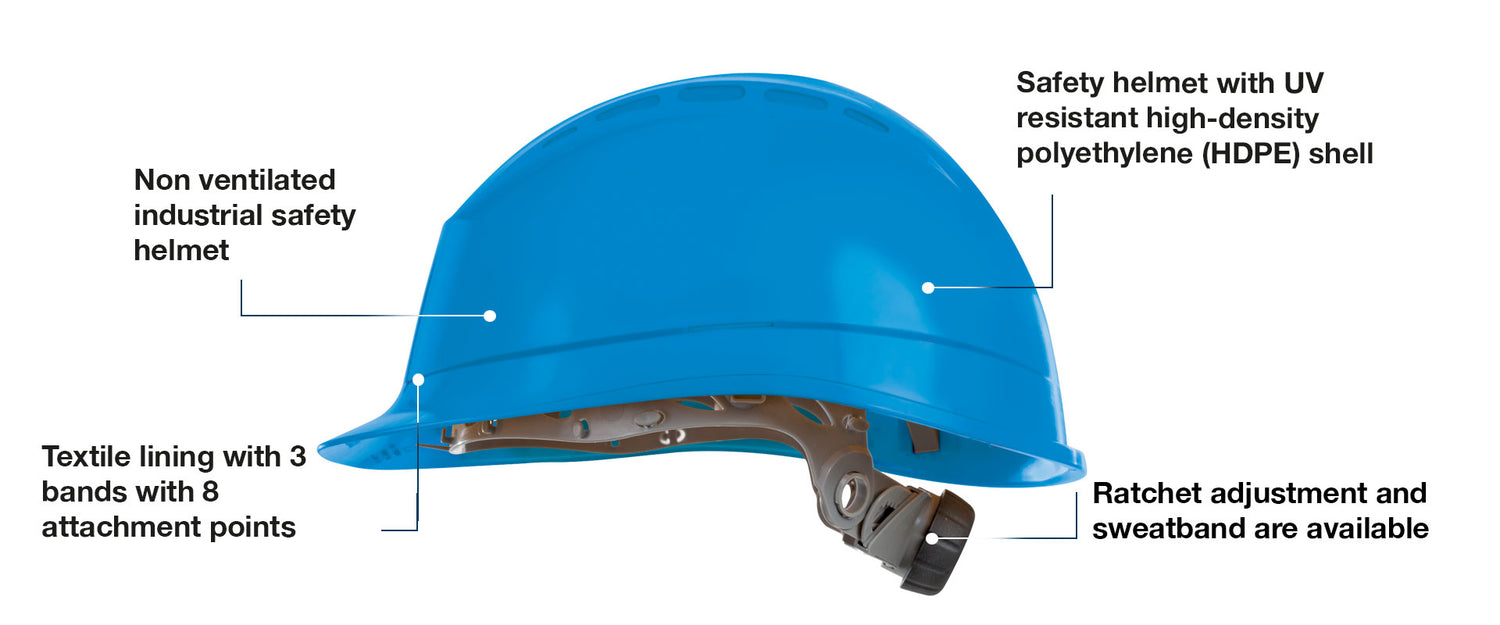 - This non ventilated HDPE safety helmet adapts so you can forget you're wearing it with its inner foam padding for greater comfort