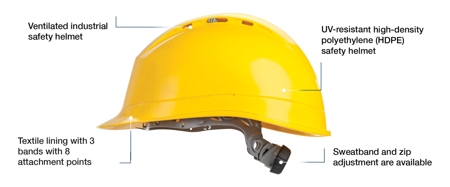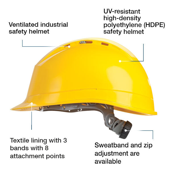 - This ventilated HDPE safety helmet adapts so you can forget you're wearing it with its inner foam padding for greater comfort