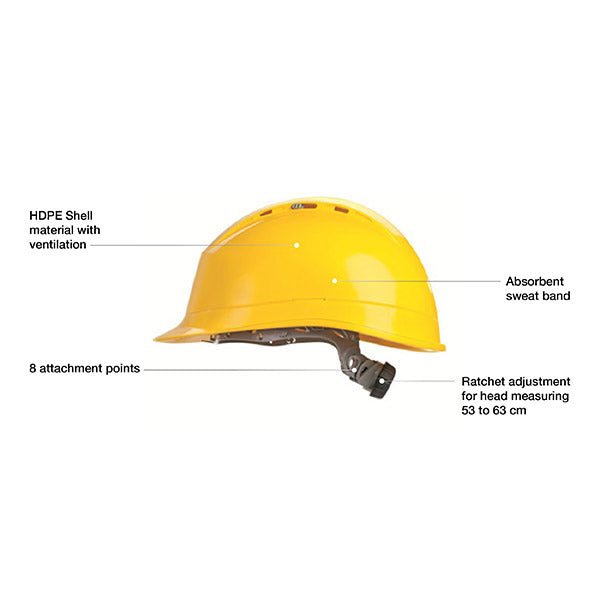- This ventilated HDPE safety helmet adapts so you can forget you're wearing it with its inner foam padding for greater comfort