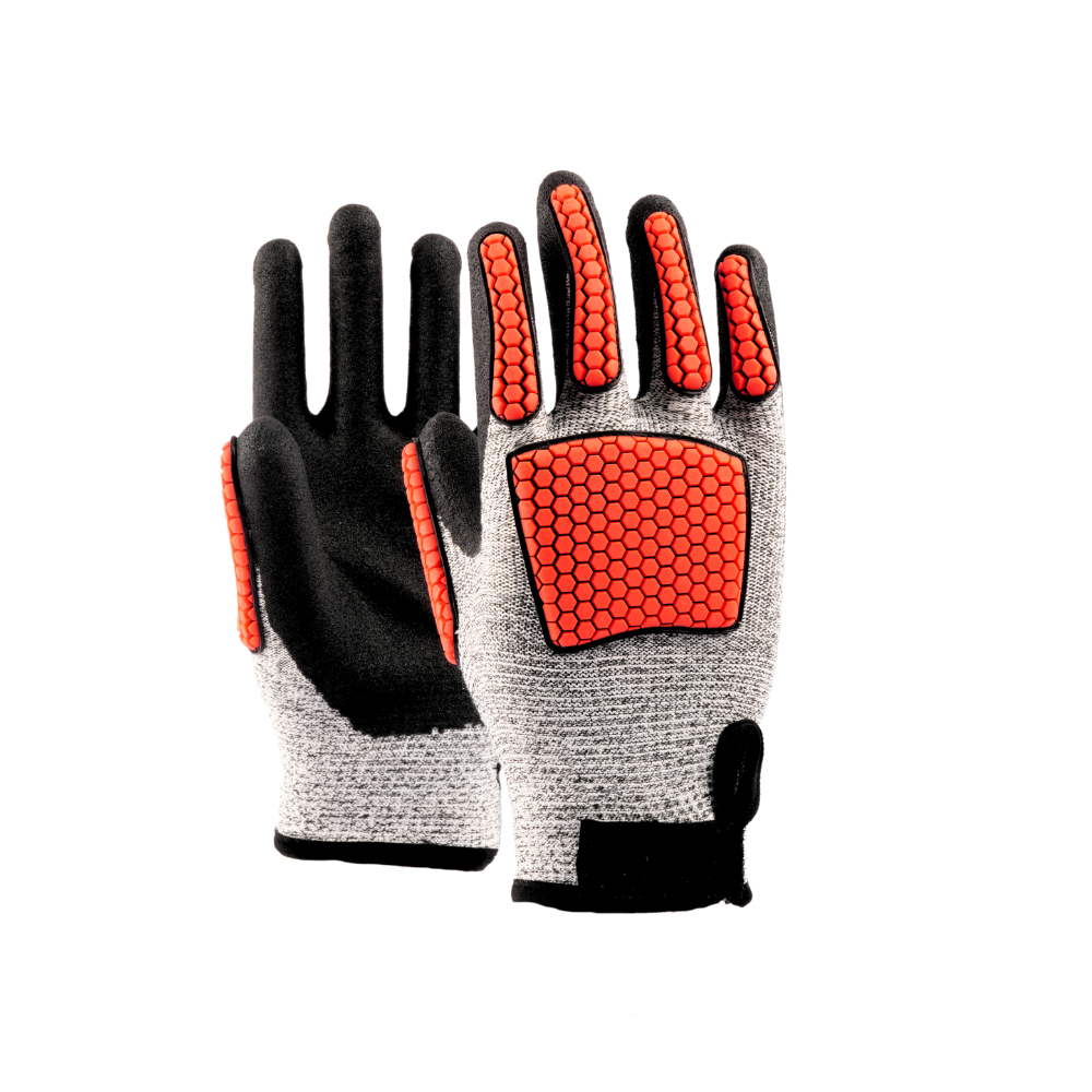 Durable Cut & Impact Protection: Made with a 15-gauge seamless liner combining Glass, HPPE, and steel filament for high cut resistance, plus a flexible honeycomb-shaped metacarpal guard for impact protection without sacrificing comfort.