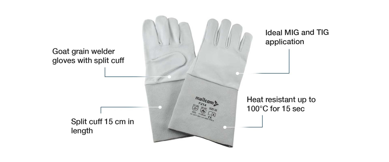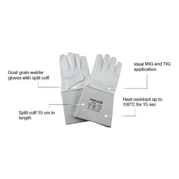 - Goat grain welder glove with 15 cm split cuff