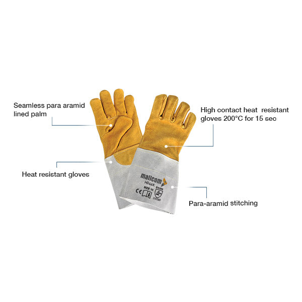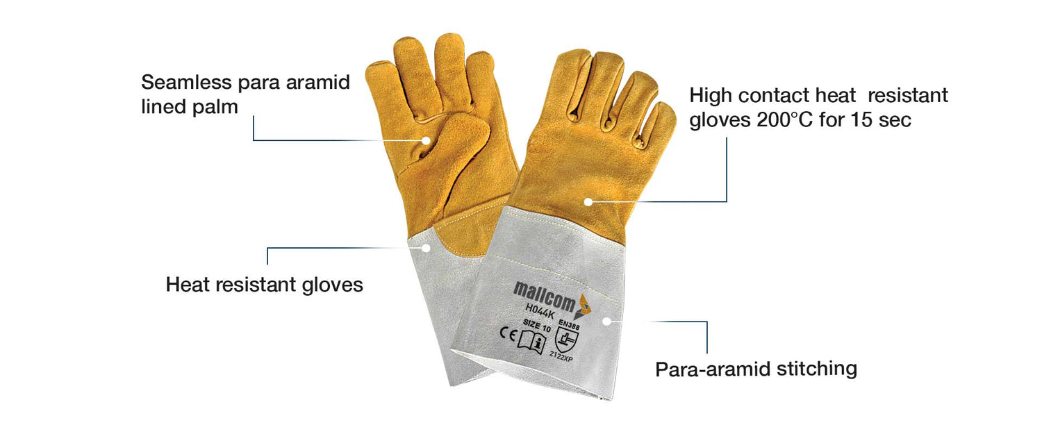 - High contact heat resistant glove (200 degrees C for 15 sec)