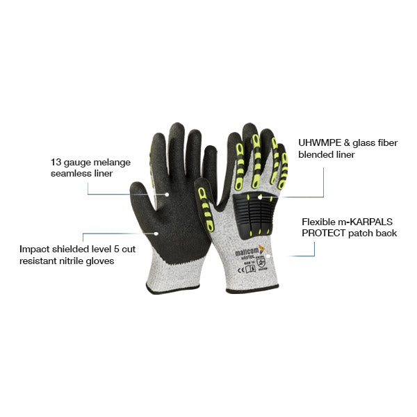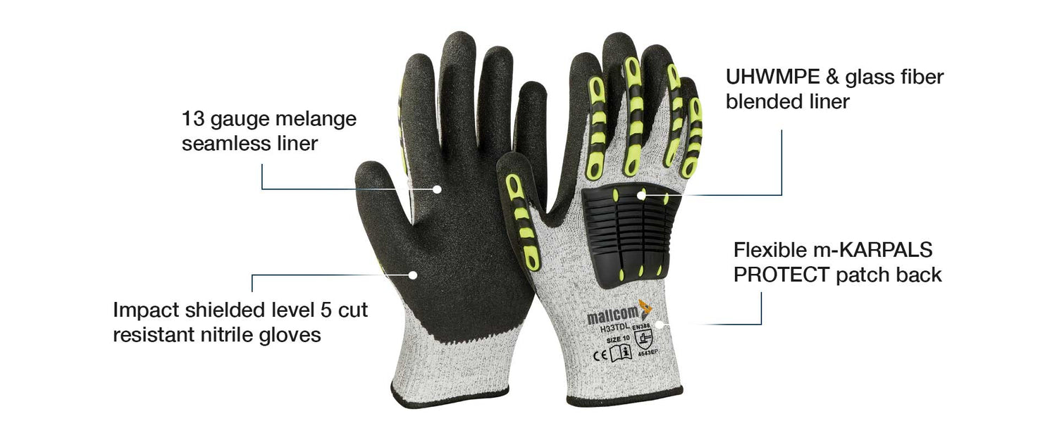 High Cut & Impact Protection: Made with 13G UHWMPE & fiberglass blended liner and Tuf Tech® yarn for excellent cut resistance and back-of-hand impact protection with Flexible m-KARPALS PROTECT® patch.
