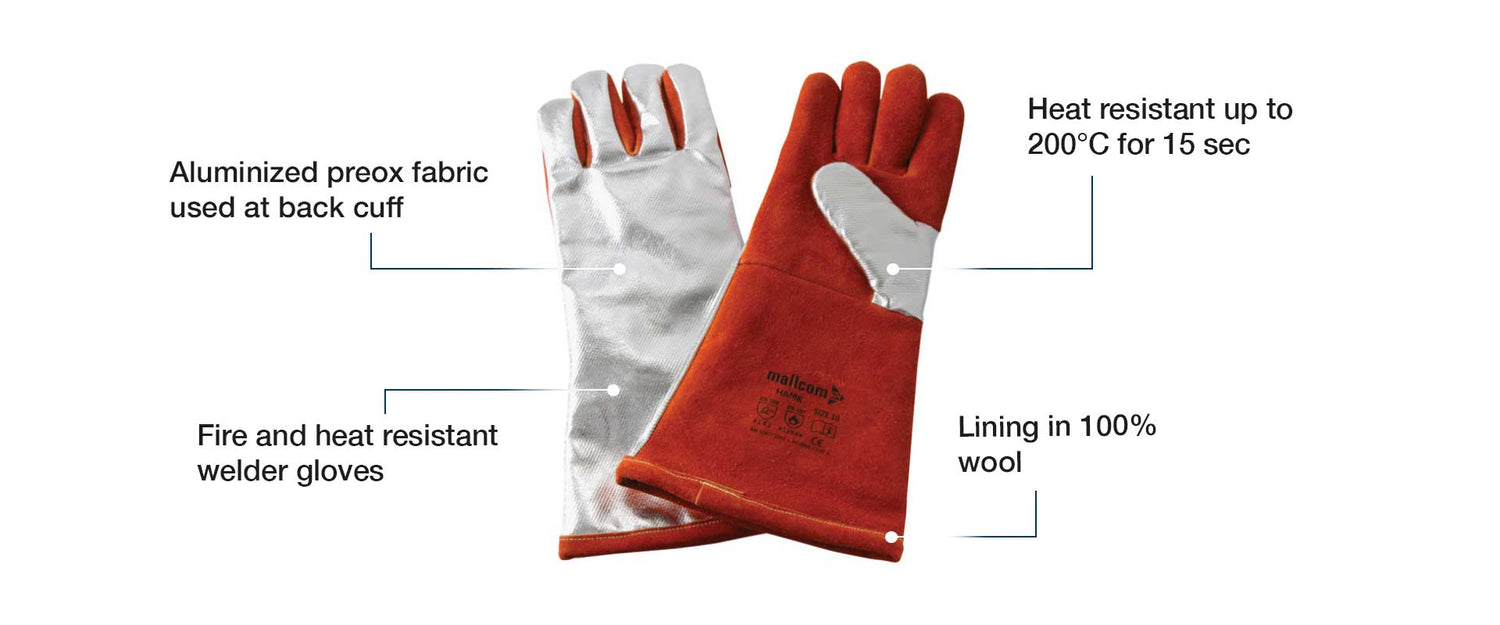 - Aluminized preox fabric used at back cuff Protection against radiant and molten splash