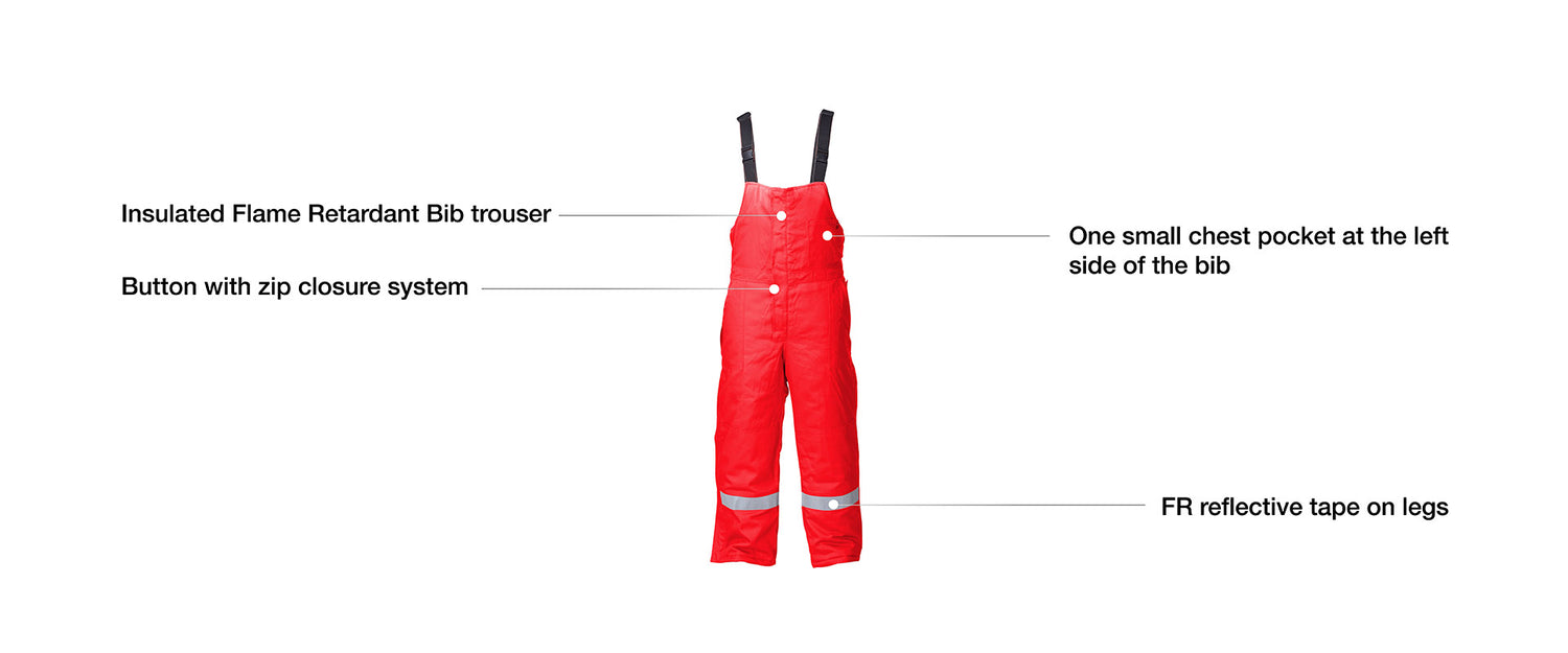 Flame-resistant Insulated Bib Trouser for protection of industrial personnel against short-duration thermal exposures from fire.