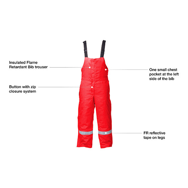 Insulated flame retarded Bib trouser. Button with zip closure system