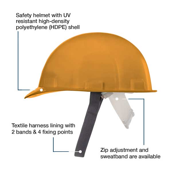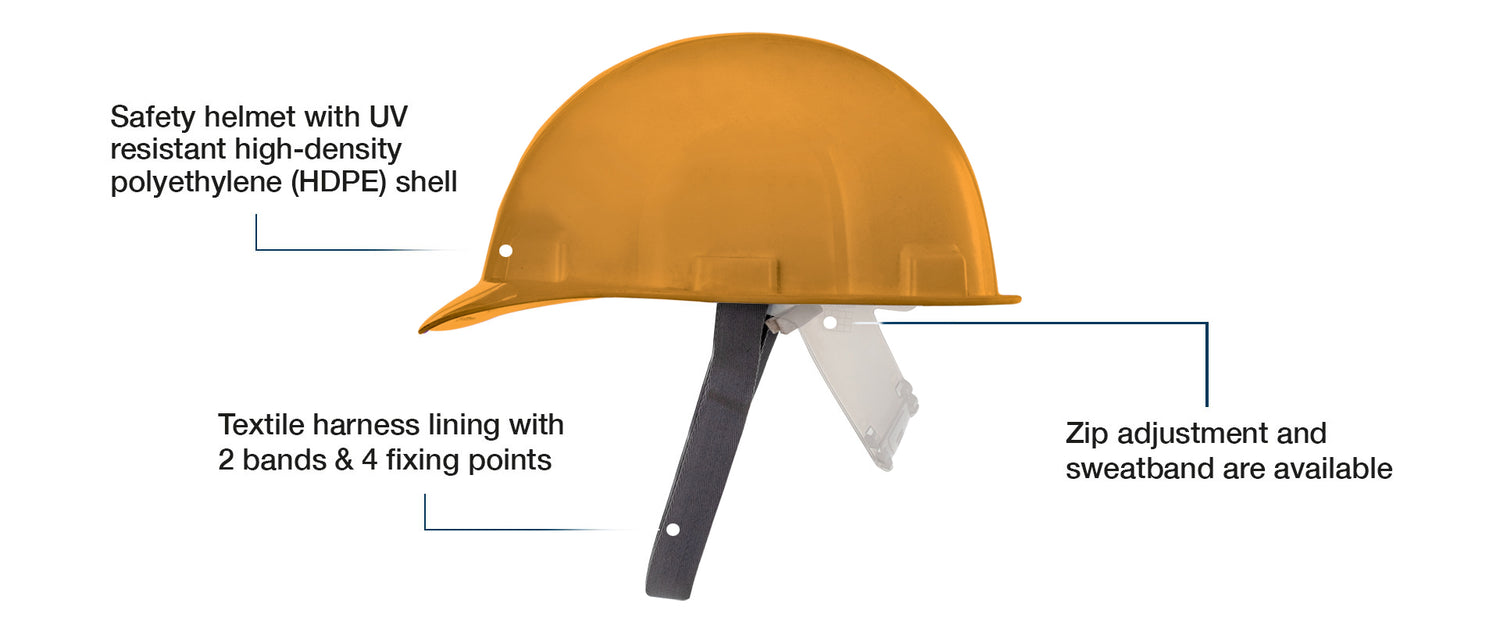 Safety helmet with UV-resistant high-density polyethylene (HDPE) shell