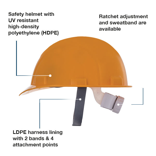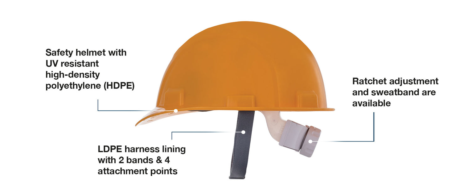- It is a sturdy UV-resistant HDPE safety helmet without ventilation