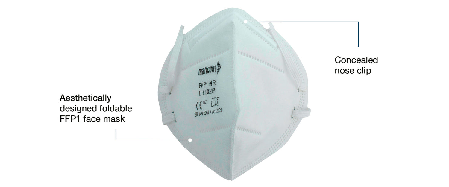 - Aesthetically designed half foldable FFP1 face mask with ear lobe