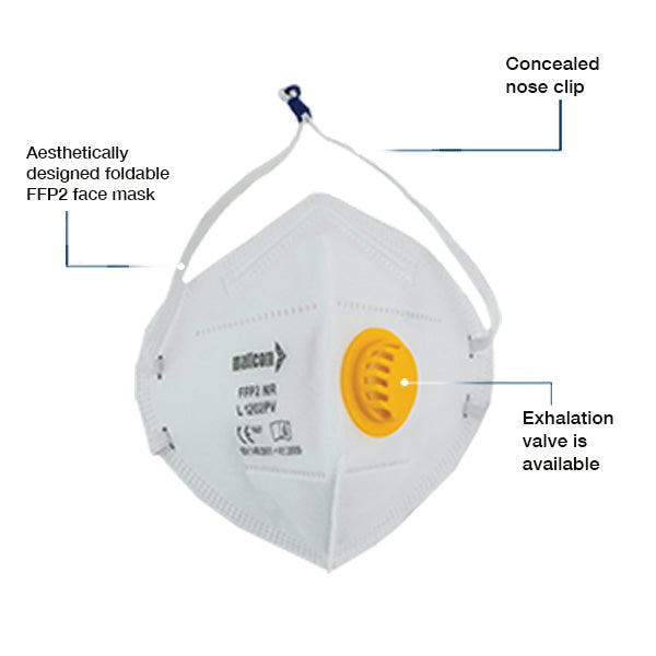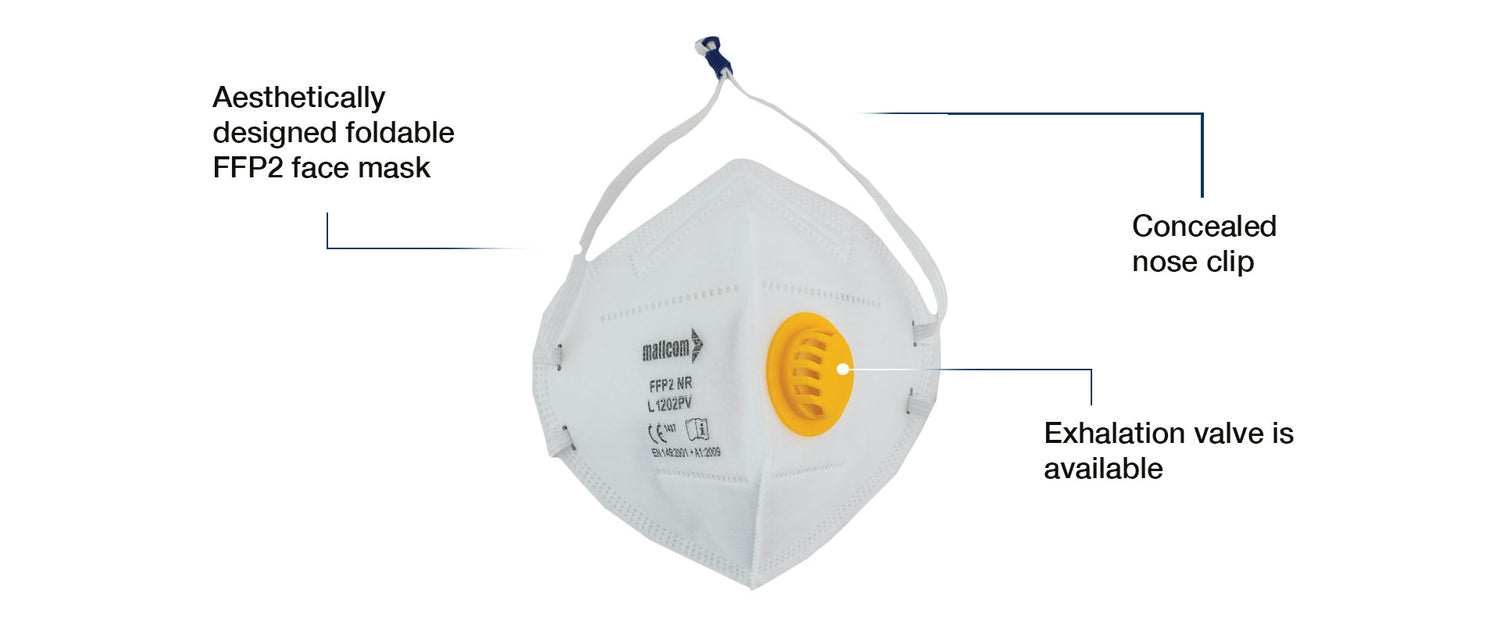 - Flatfold disposable FFP2 half masks with exhalation valve