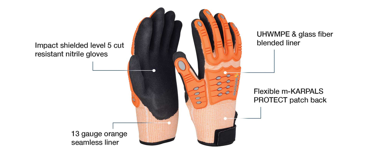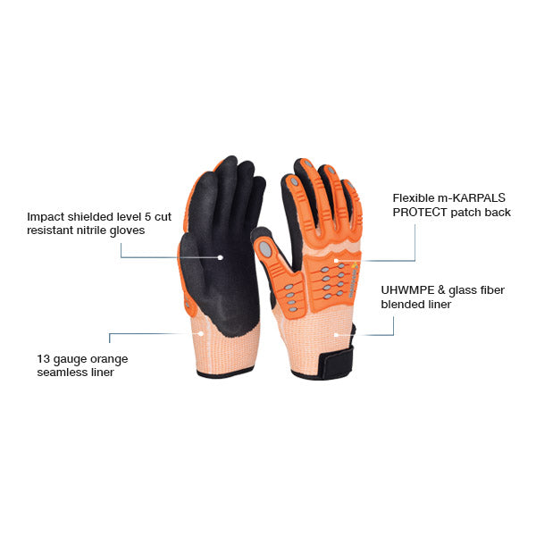- Impact shielded level 5 cut resistant nitrile gloves