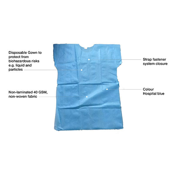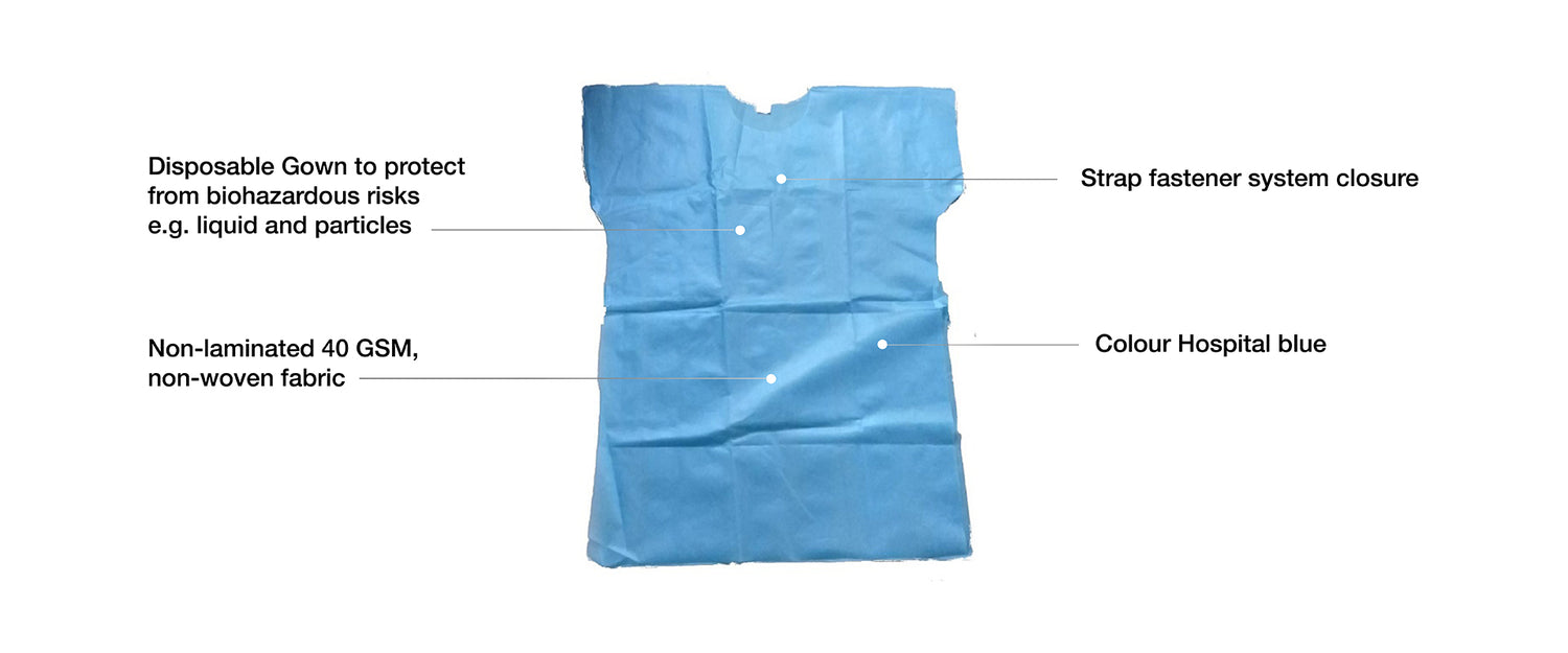 - Disposable Gown to protect from bio hazard risk, liquid and chemicals