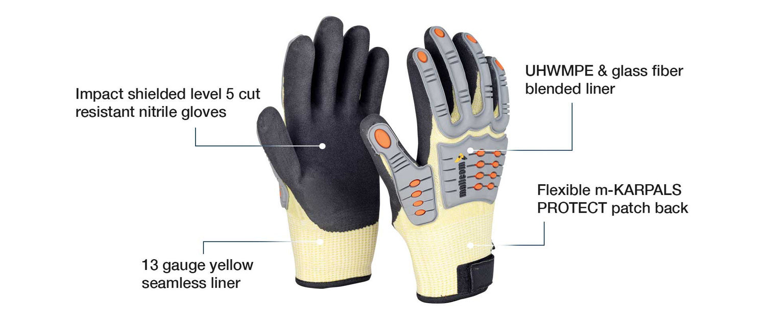 - Impact and cut resistant NBR coated glove.