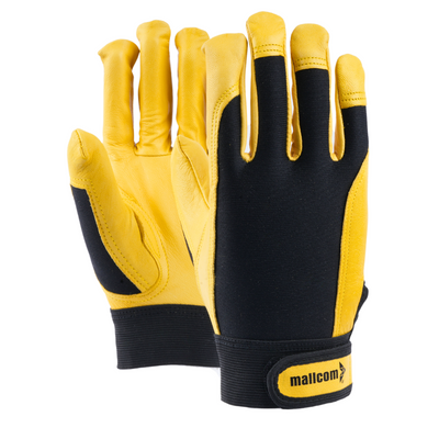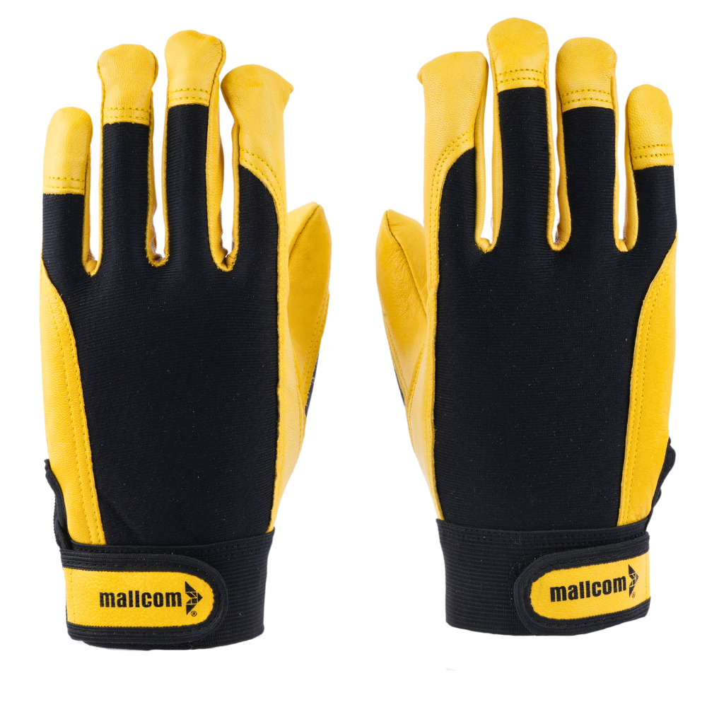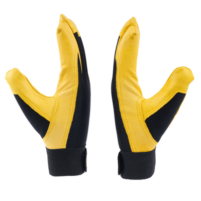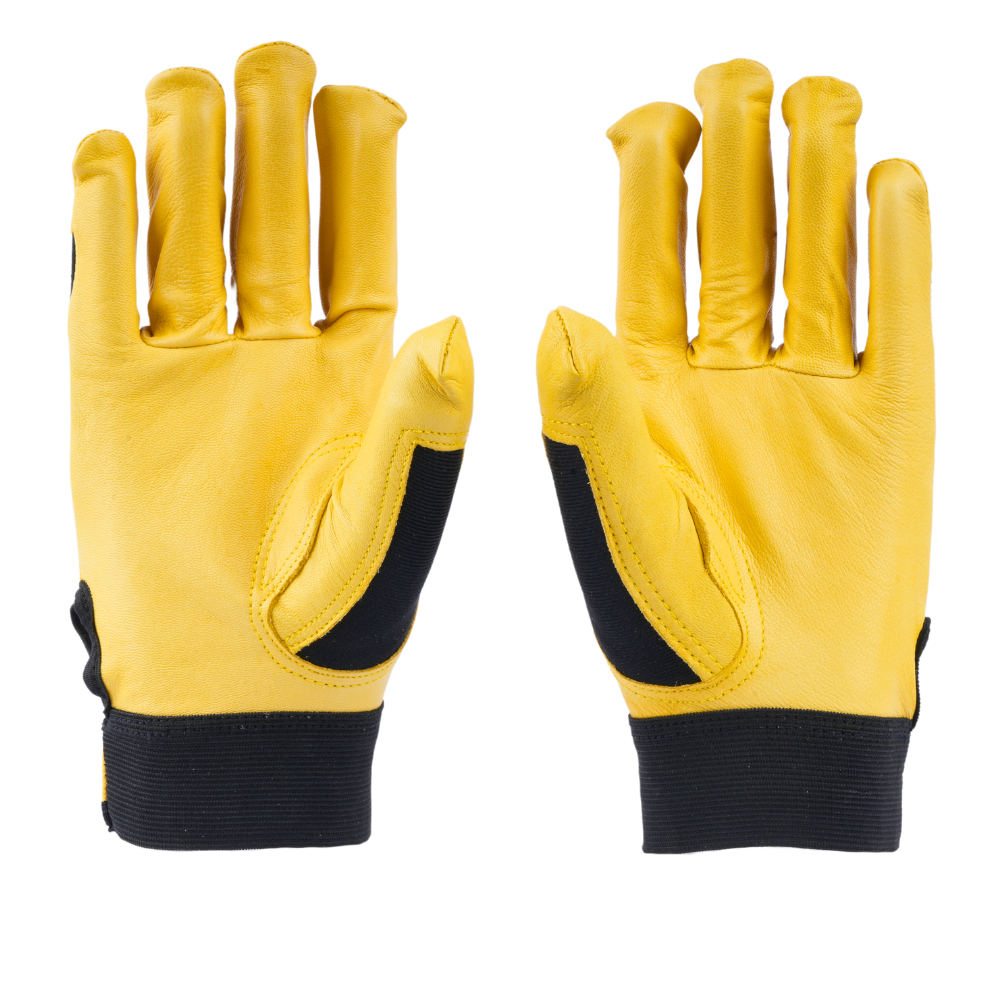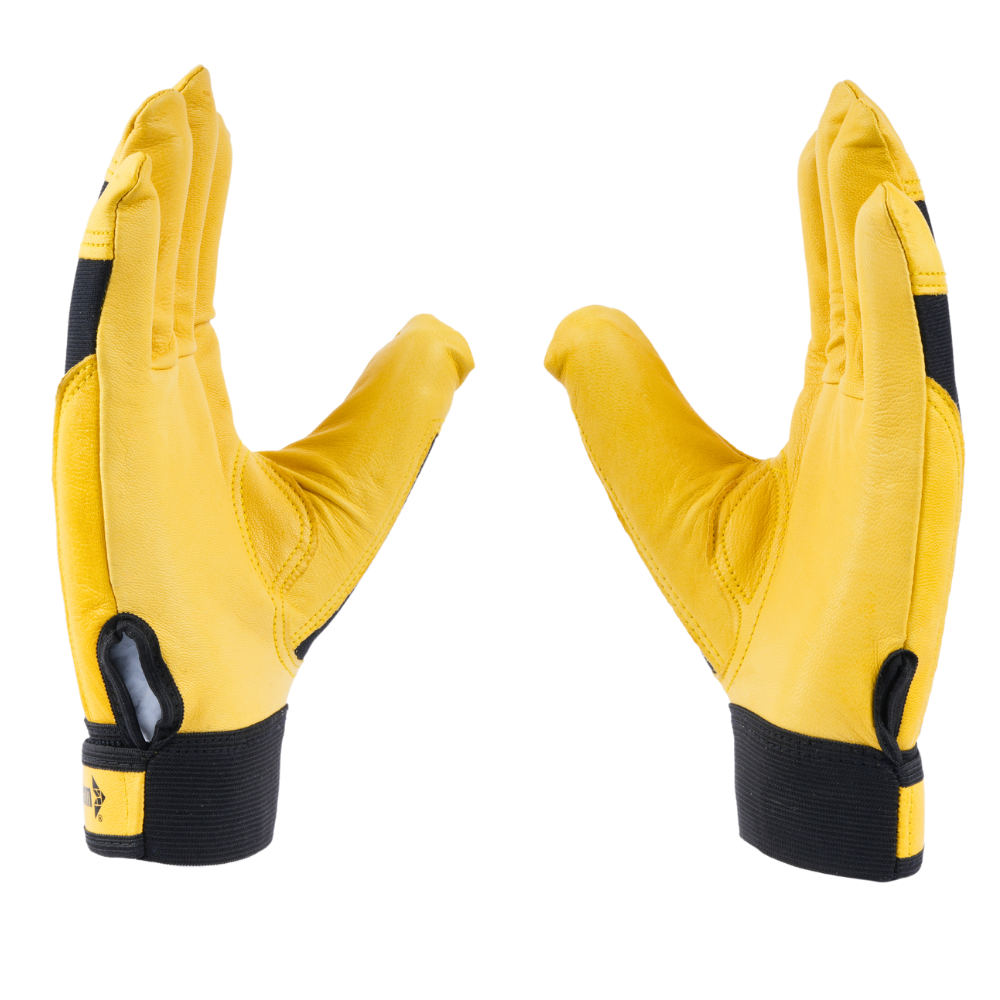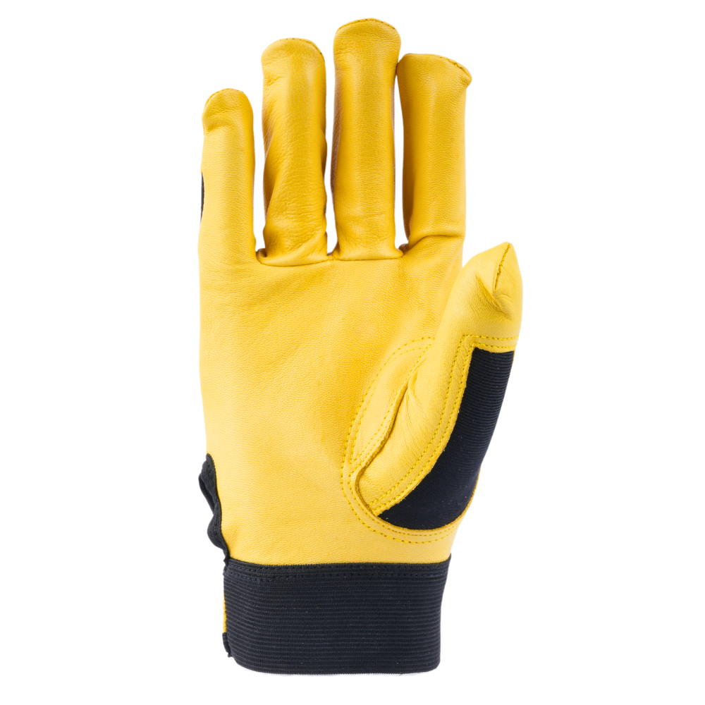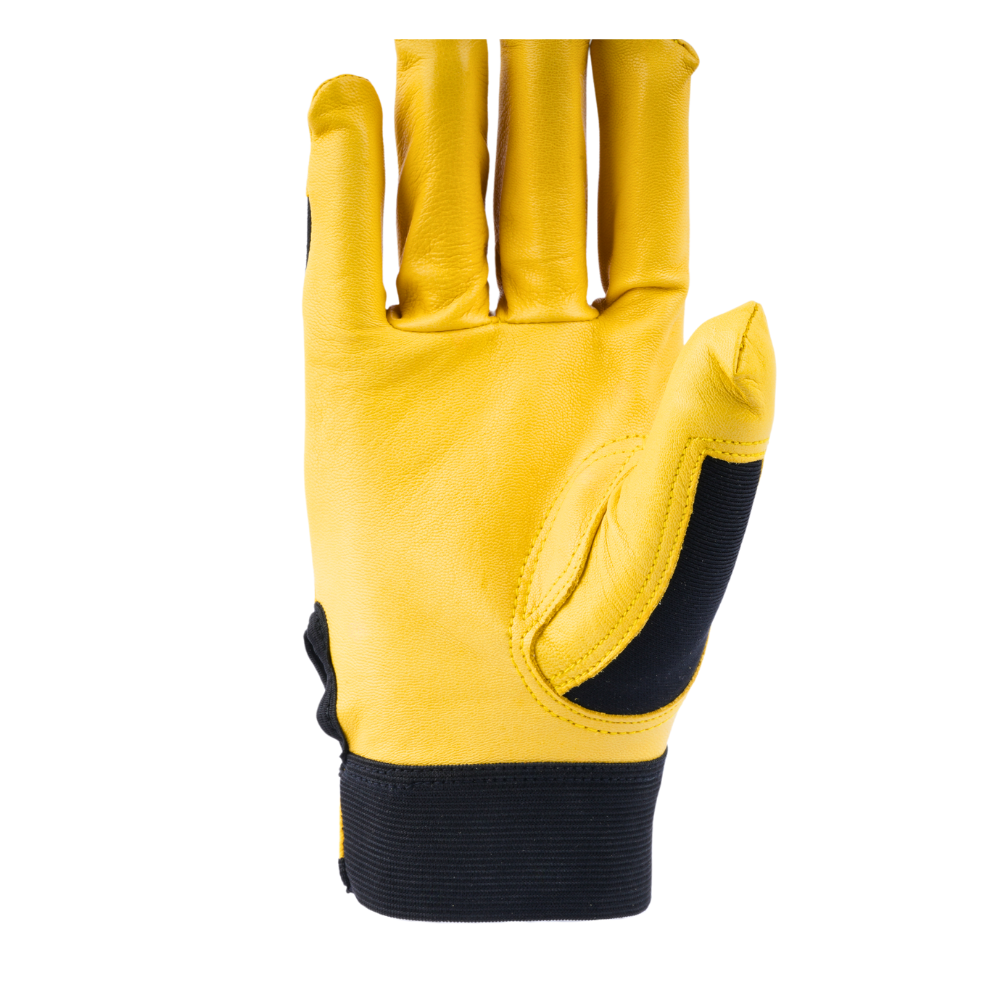 Back: Similarly, the back of the glove is composed of dyed yellow grain leather with a yellow knuckle guard, ensuring uniform protection and resilience.