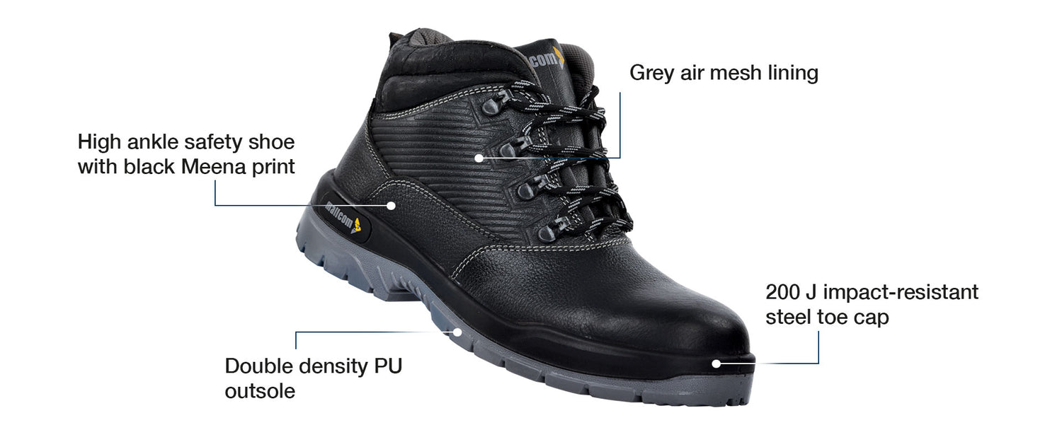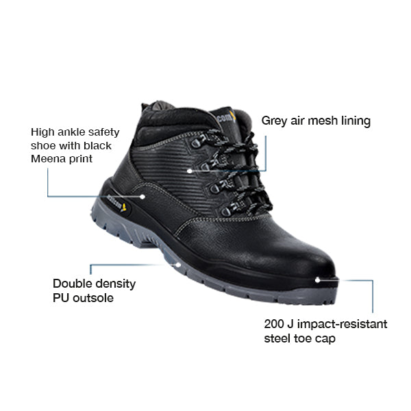 - Meena print grain black leather upper high ankle shoe boot with direct injected double density PU.
