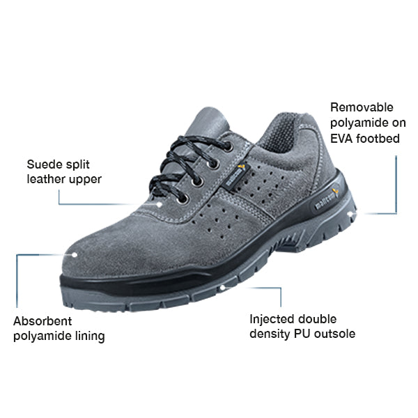 - Low ankle leather boot made for all major floor work in workfloors to protect from hazards like falling objects or heavy loads or working with sensitive equipments.