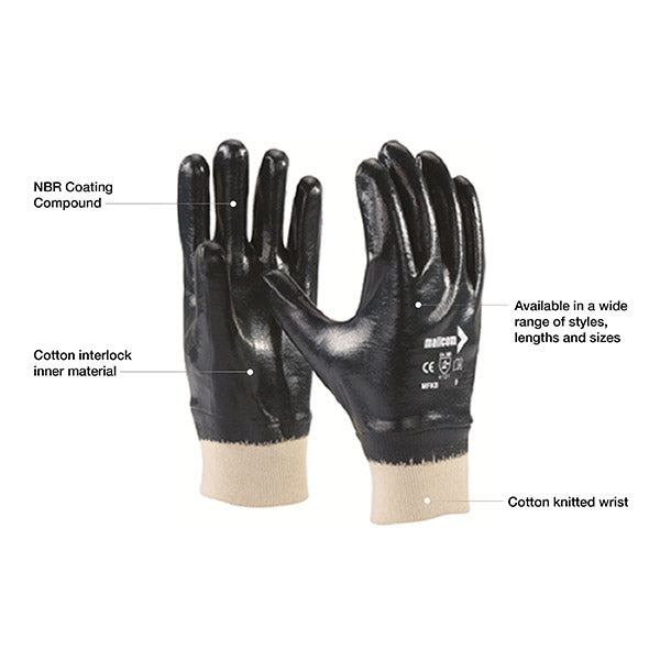 - CERTIFIED PROTECTION AND DURABILITY - The Mallcom MFKB Blue 240 GSM Cotton Interlock Cut n Stitch Medium Coated Nitrile Safety Gloves are certified under EN 388, ensuring top-notch protection. With a medium-full nitrile coating on 100% cotton, these gloves offer robust abrasion resistance and durability. The interlock lining knitted at the wrist prevents dust ingress, maintaining cleanliness during tasks