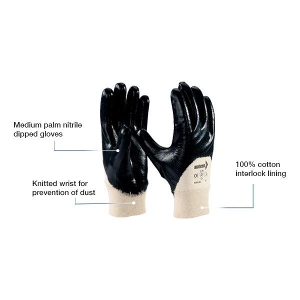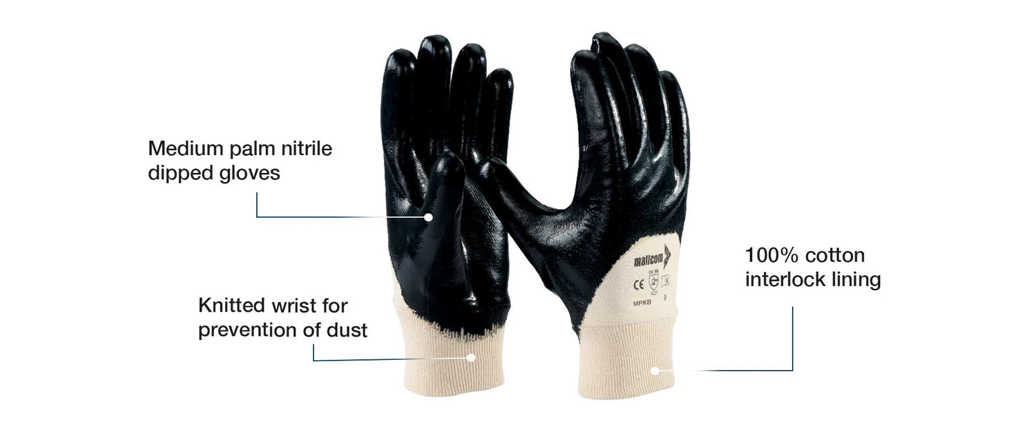 - Medium palm nitrile dipped glove