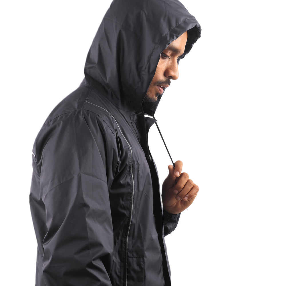- Each garment is stitched with stitch class 300 and all exposed seams are sealed with sealing tape making the garment waterproof.