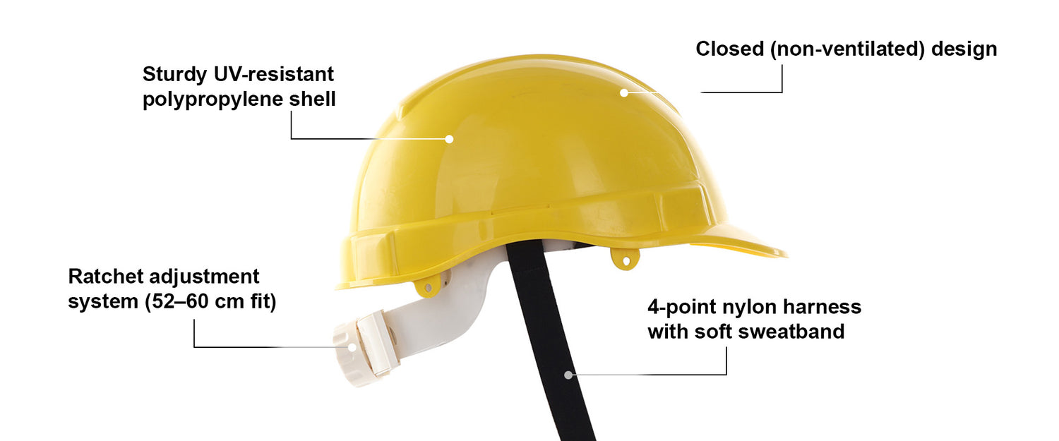 Closed Design: Non-ventilated shell ideal for environments where ventilation holes are not preferred.