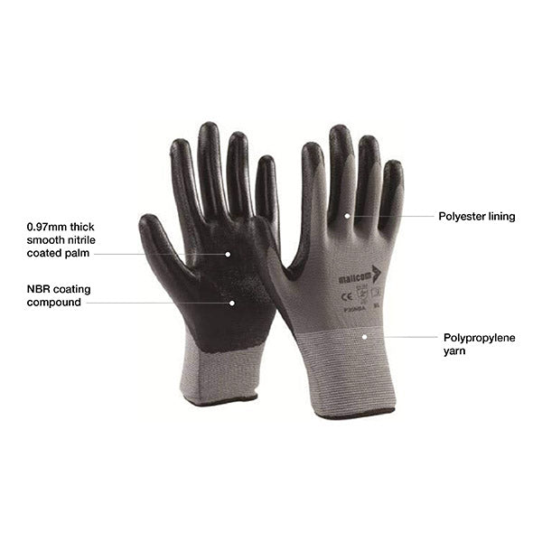 ADVANCED PROTECTION AND GRIP - Constructed with a grey polyester 15 gauge smooth finish liner coated with black nitrile, these gloves offer advanced protection and exceptional grip performance. Designed to handle slippery or oily surfaces with ease, they provide a secure grip while guarding against abrasion, tear, and oil. The sporty design not only ensures maximum protection but also adds a stylish touch suitable for various environments