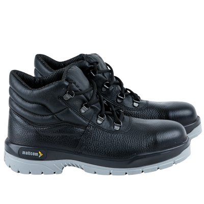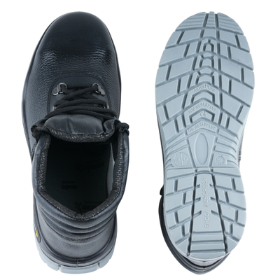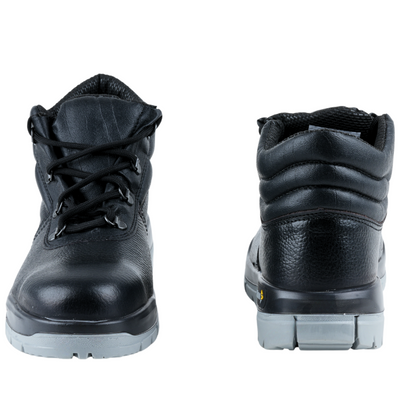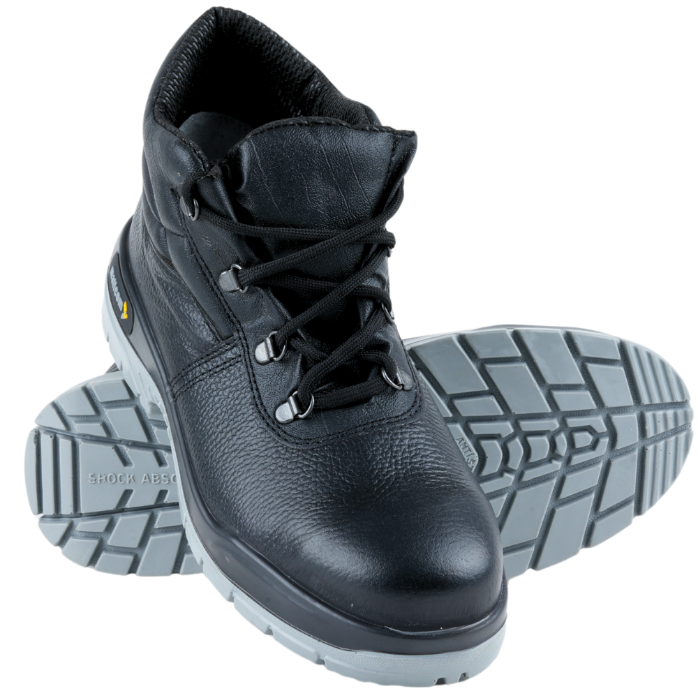 - High ankle leather boot made for all major floor work in industrial construction or workfloors to protect from hazards like falling objects or heavy loads or working with sensitive equipments.
