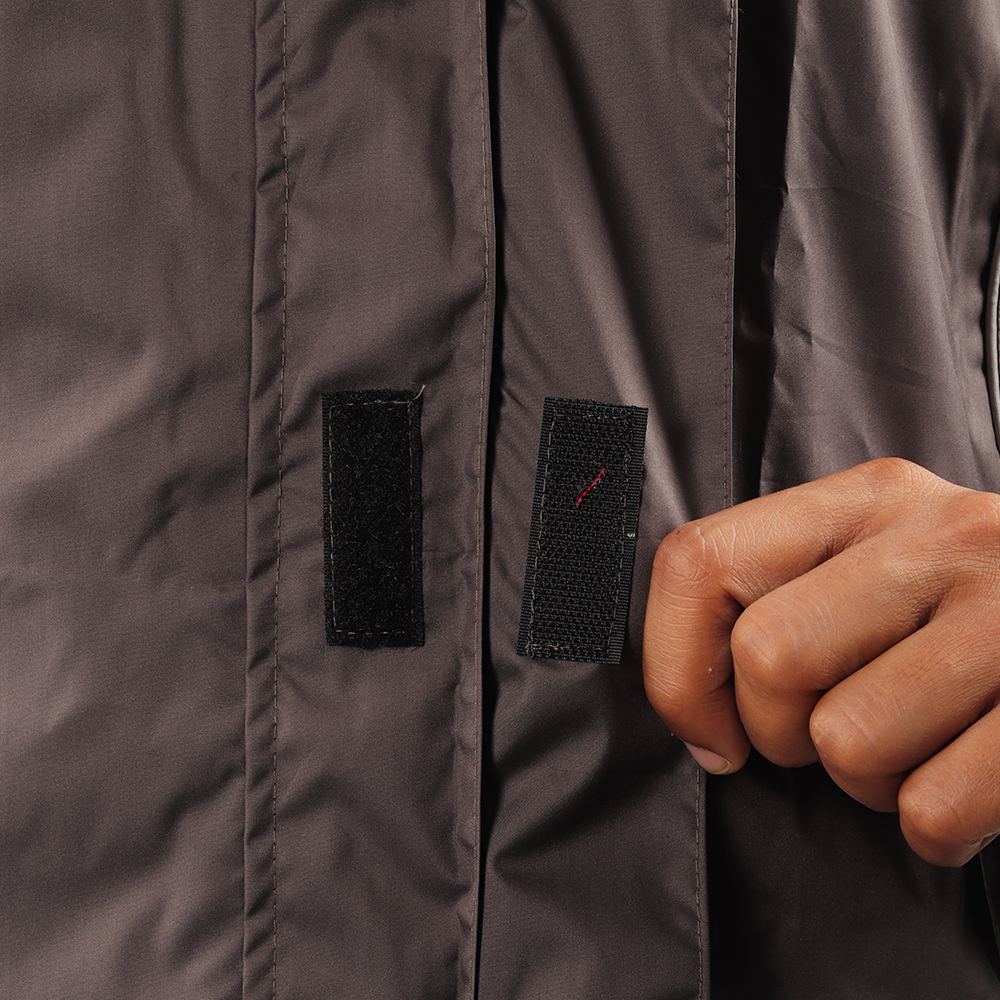 - Each garment is stitched with stitch class 300 and all exposed seams are sealed with sealing tape making the garment water proof