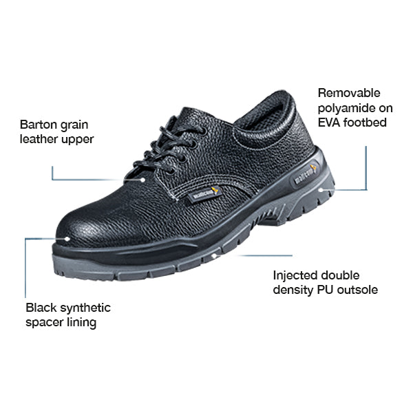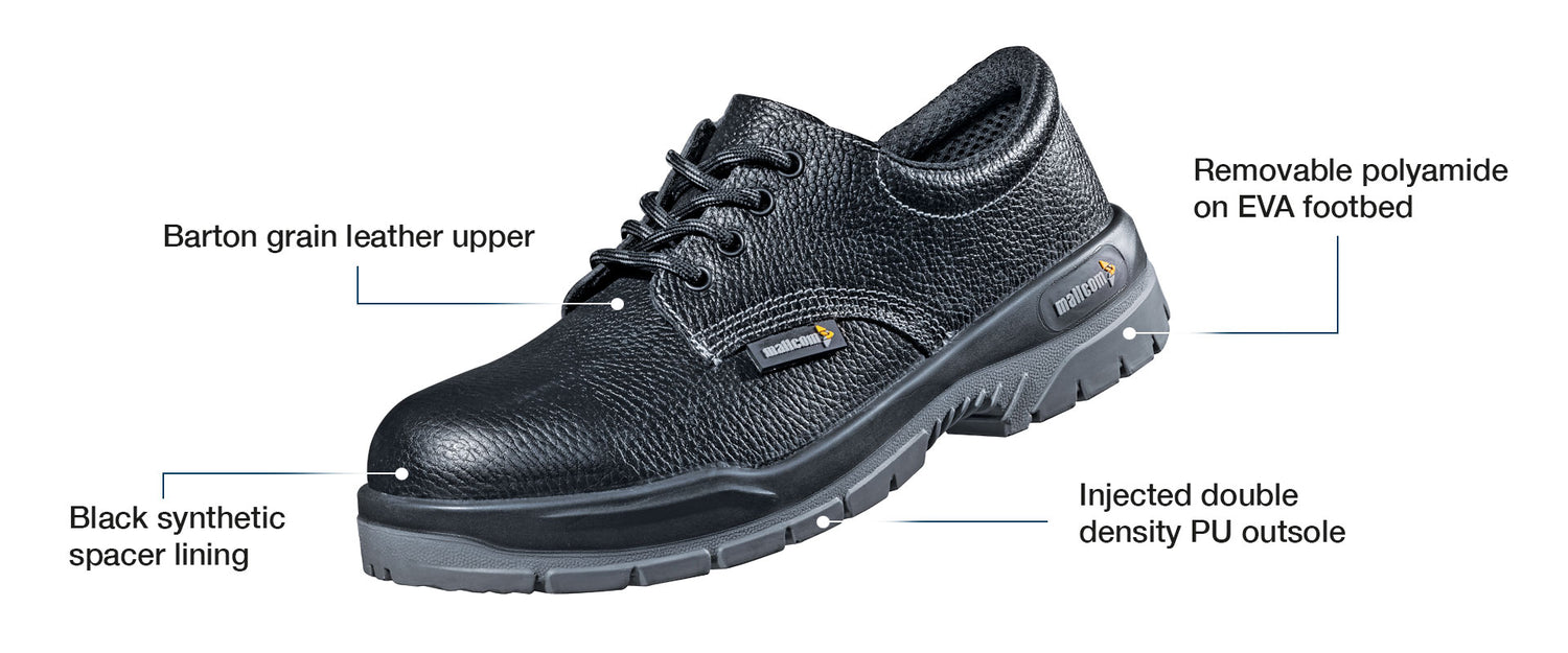 - Low ankle leather boot made for all major floor work in industrial construction or workfloors to protect from hazards like falling objects or heavy loads or working with sensitive equipments.