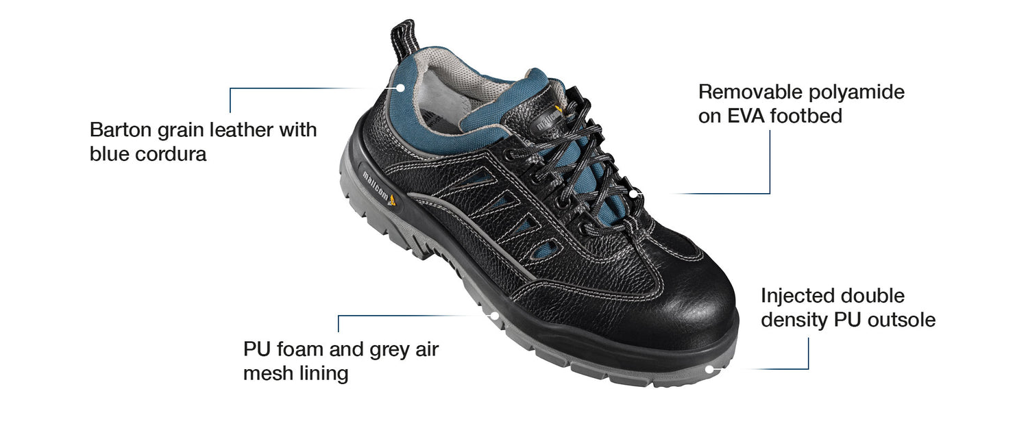 - Low ankle leather boot made for all major floor work in industrial construction or workfloors to protect from hazards like falling objects or heavy loads or working with sensitive equipments.